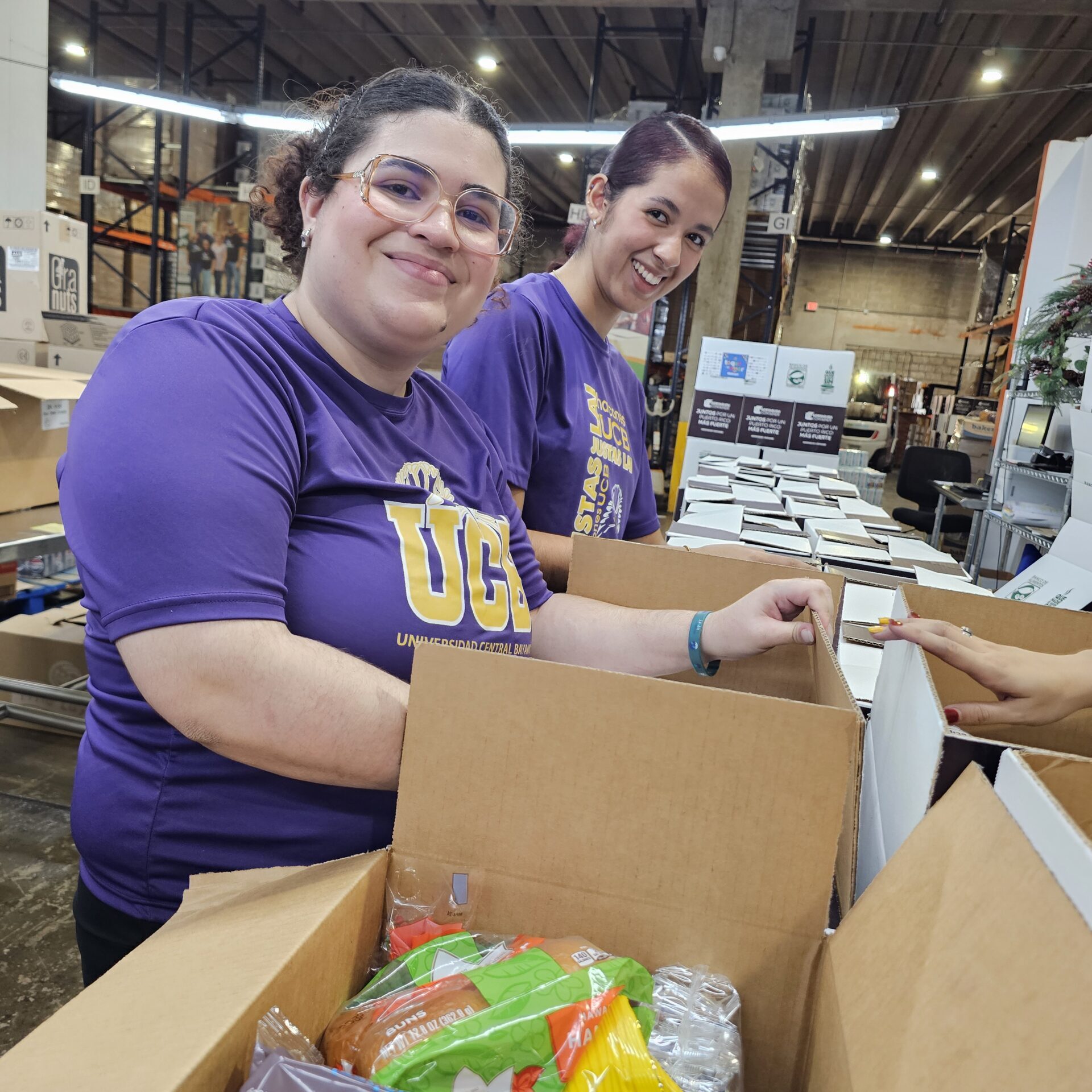 Los estudiantes de la asociación estudiantil ABIPREM del Colegio de Ciencias y Profesiones de la Salud ofrecieron el pasado 15 de diciembre un servicio comunitario en el Banco de Alimento de Puerto Rico. Colaboraron en la confección de cajas con alimentos no perecederos que luego serían entregados a personas con necesidad económica.