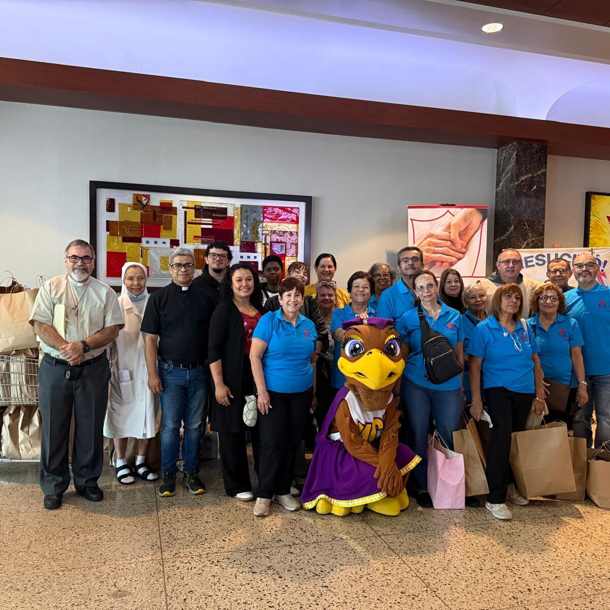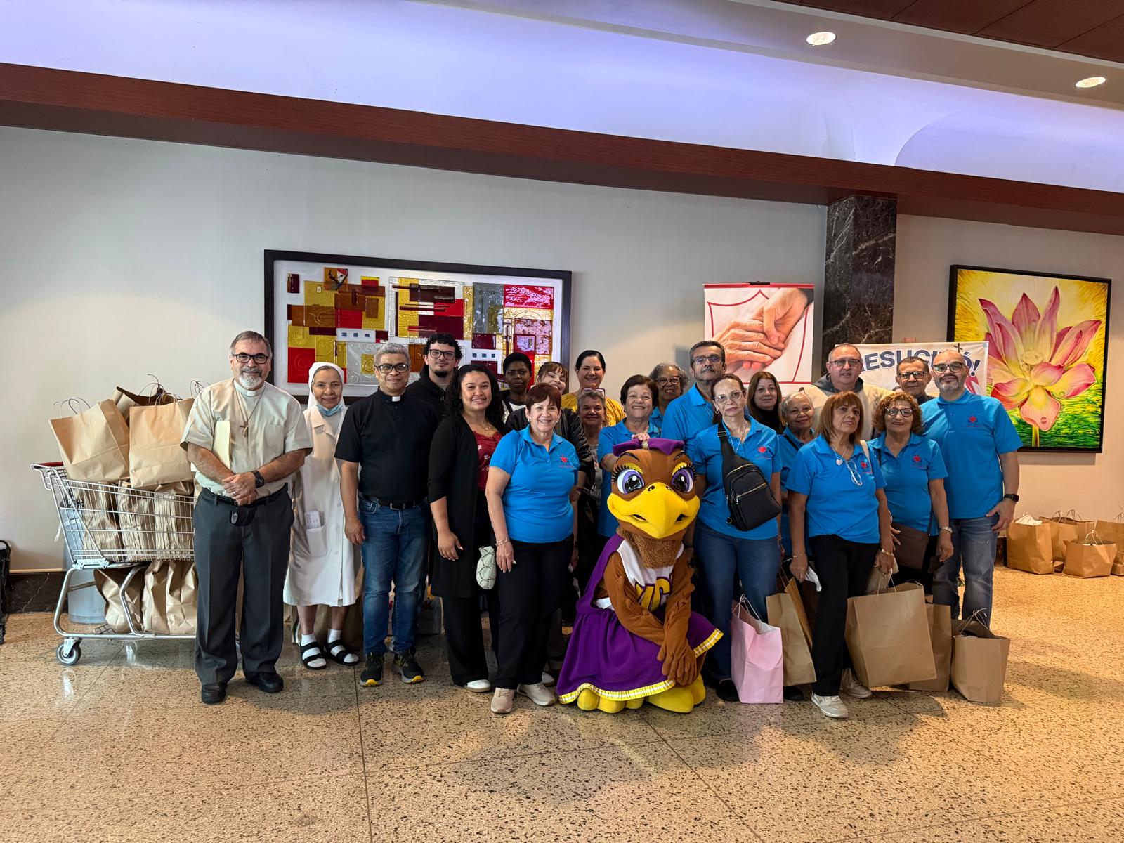 El pasado viernes 24 de abril se realizó el servicio comunitario en el hospital Auxilio Mutuo. La experiencia fue una profundamente significativa, marcada por la solidaridad y el compromiso con el prójimo. En ella participó el personal de la Pastoral Universitaria y la Comunidad Estudiantil Veritas, acompañados por la Halcona y los feligreses de la parroquia Ascensión del Señor de la Urb. Rexville de Bayamón, quienes unieron esfuerzos para llevar un mensaje de esperanza y alegría a los pacientes. A través de gestos sencillos pero llenos de cariño y lograron iluminar el día de muchas personas que atraviesan situaciones difíciles. Esta iniciativa no solo benefició a los pacientes, sino que también fortaleció el sentido de comunidad y servicio entre los participantes, recordando el valor de la empatía y la entrega desinteresada.